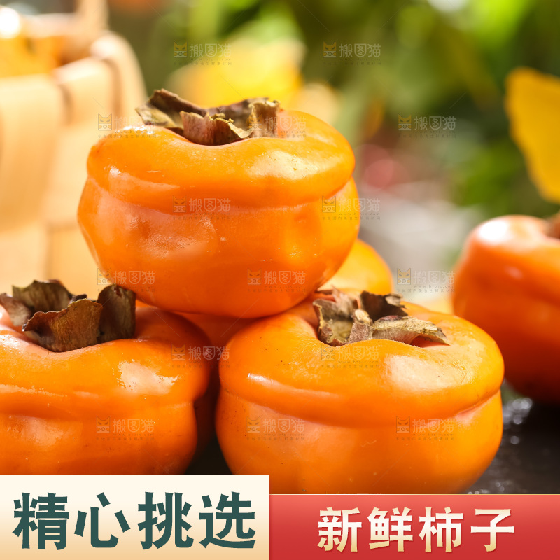 新鲜磨盘柿