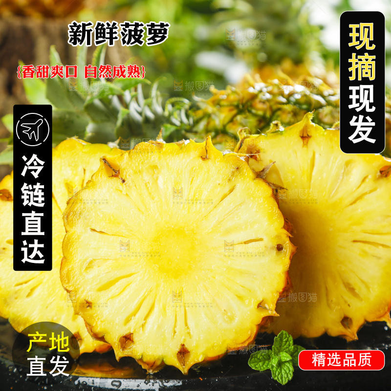 黑底上摆放着进口菠萝