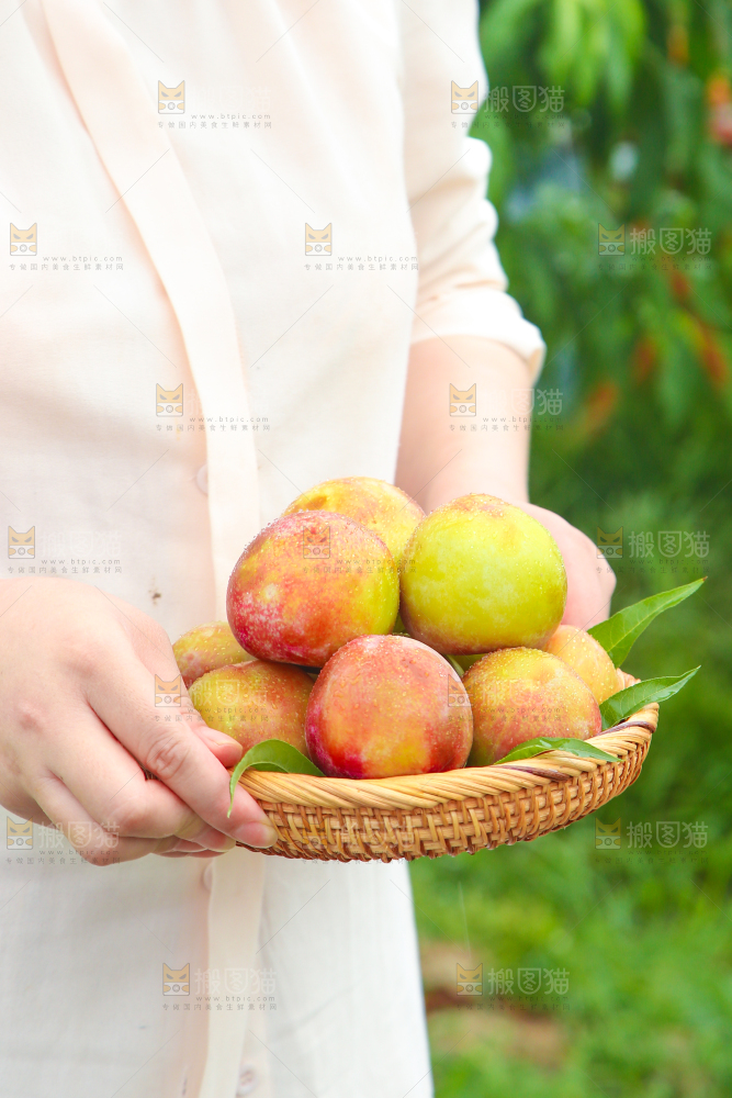 手里拿着李子