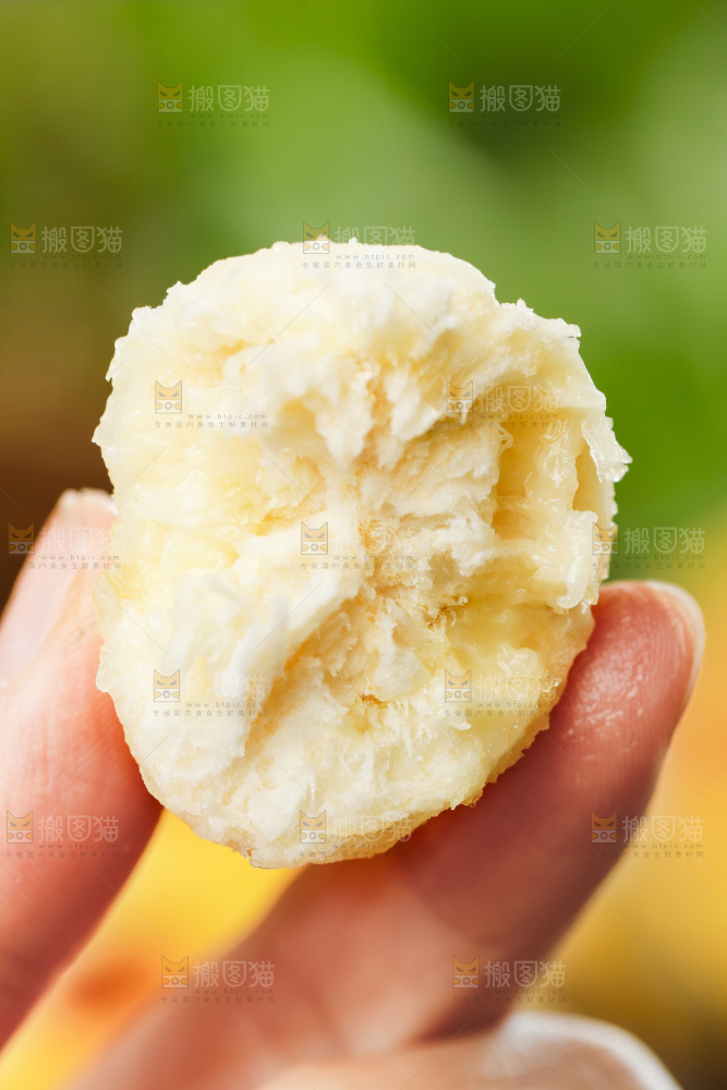 手上拿着苹果蕉果肉