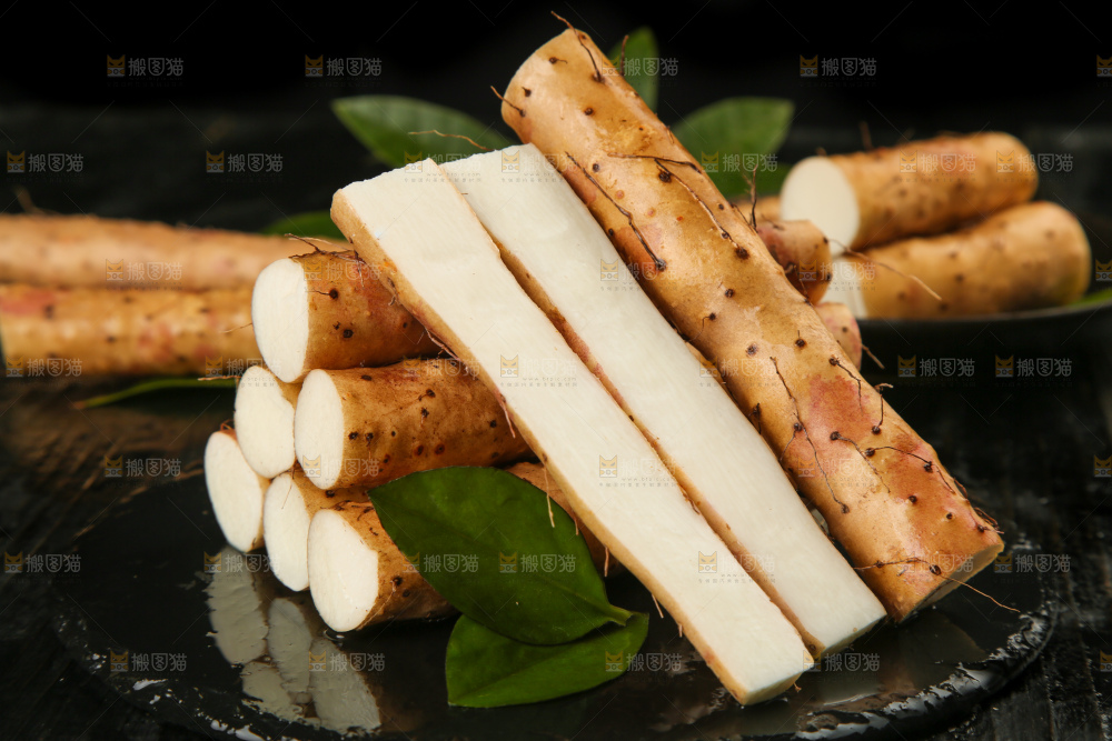黑底上摆放着白山药