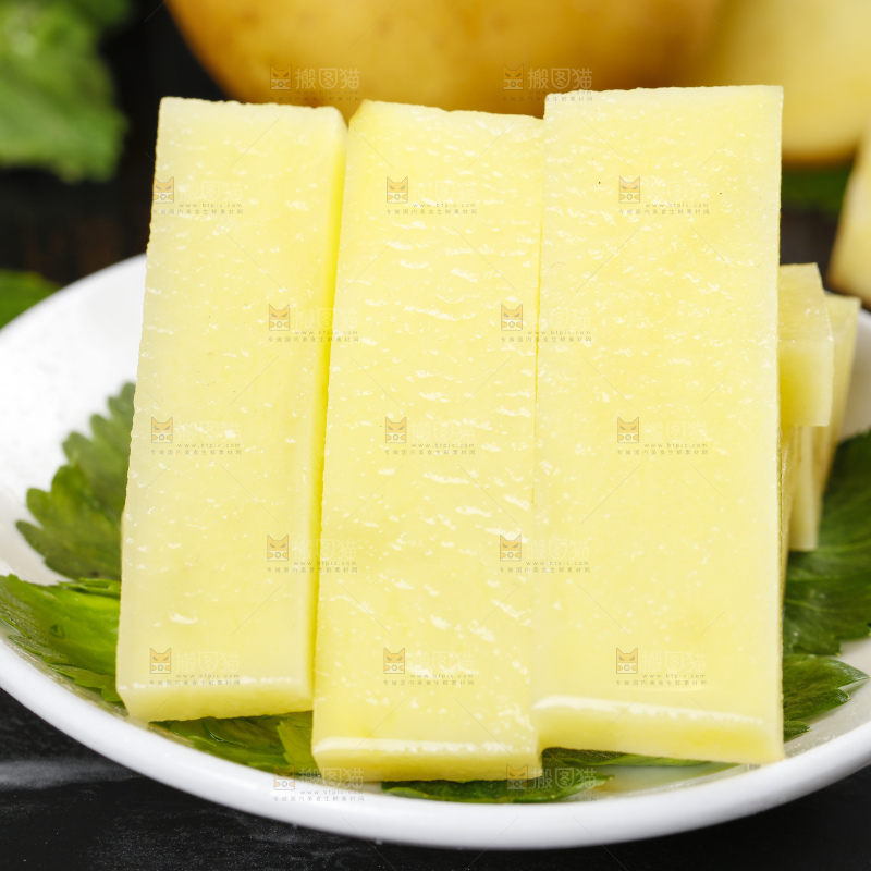 黑底上放着切好的土豆条