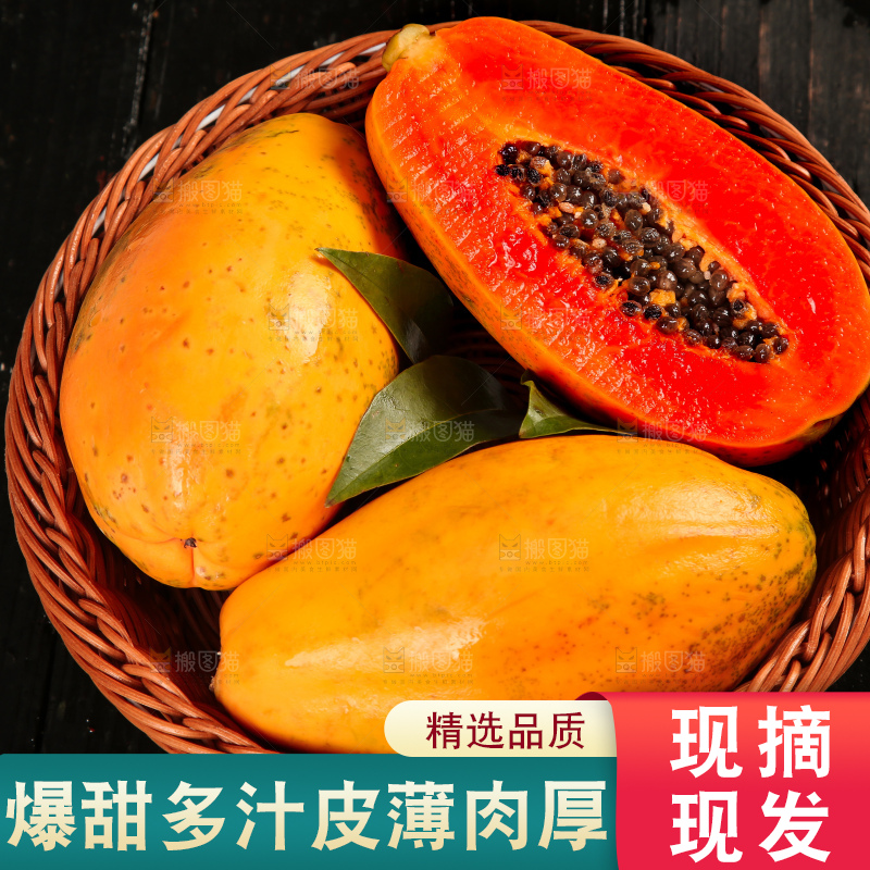 木底上放着一筐切开的雷州冰糖红心木瓜