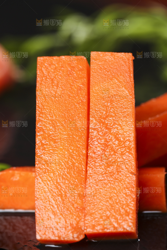 黑底上摆放着切开的胡萝卜