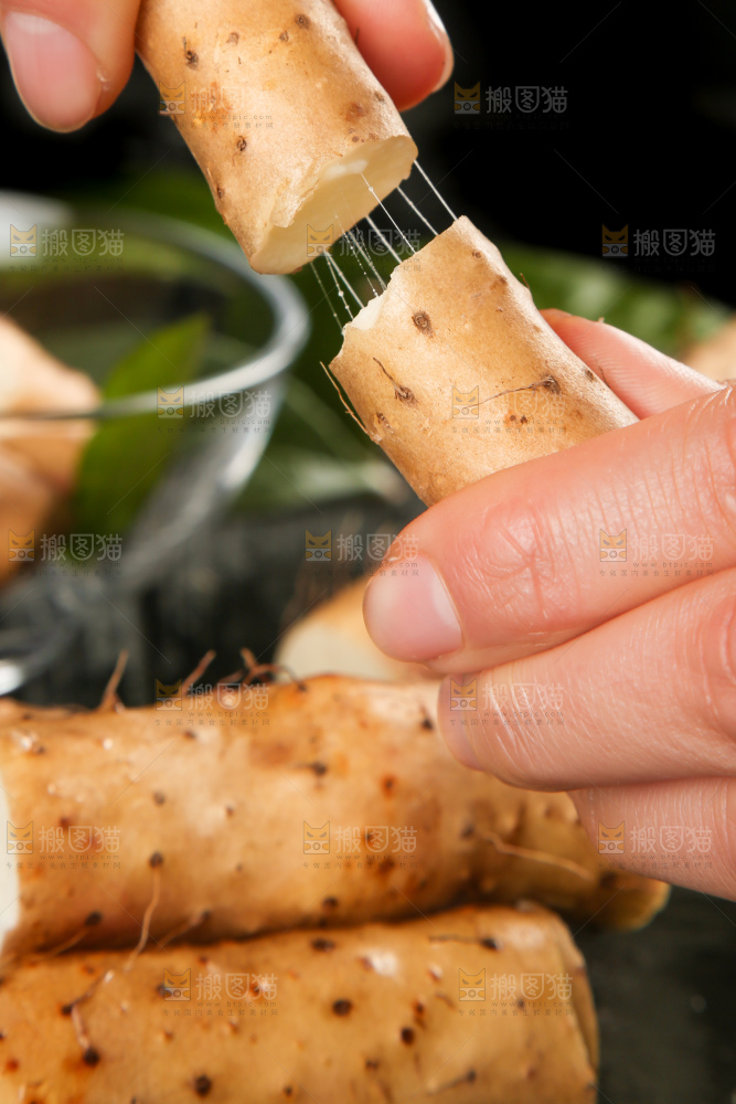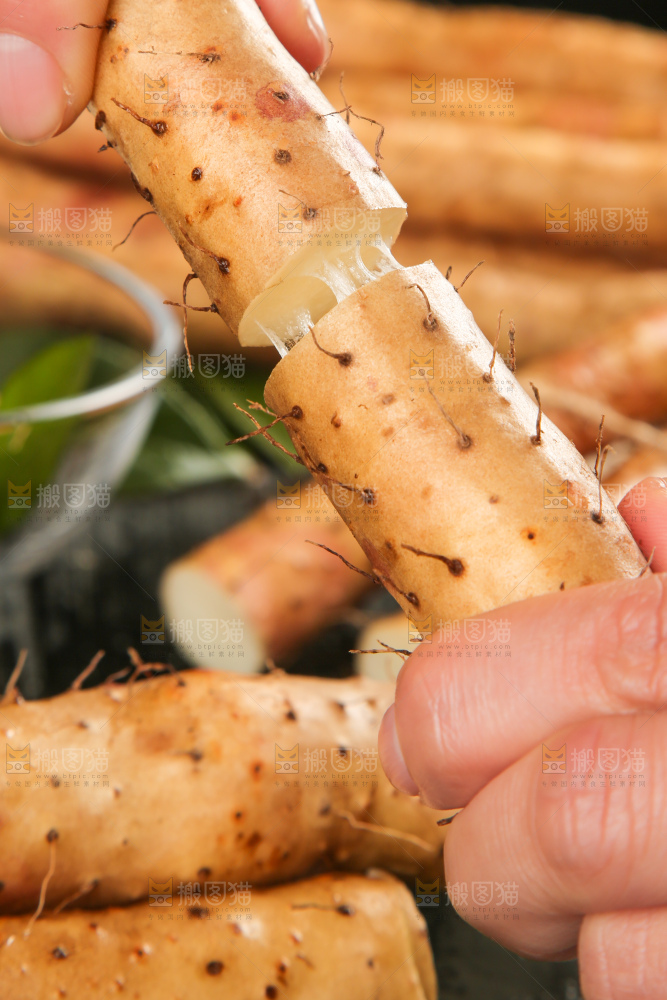 手里拿着白山药