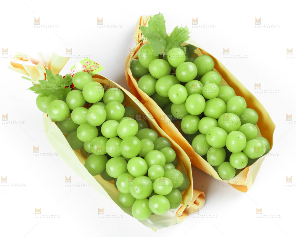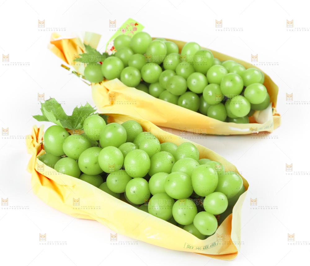 白底上摆放着阳光玫瑰葡萄