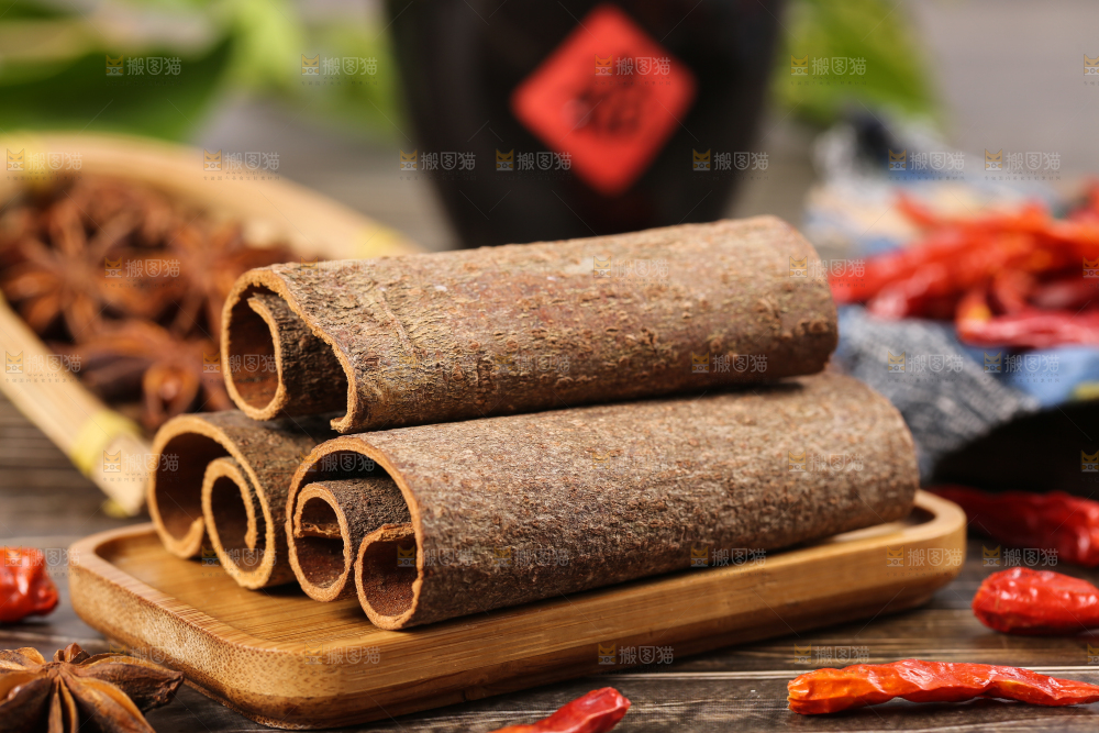 木底上放着一盘桂皮