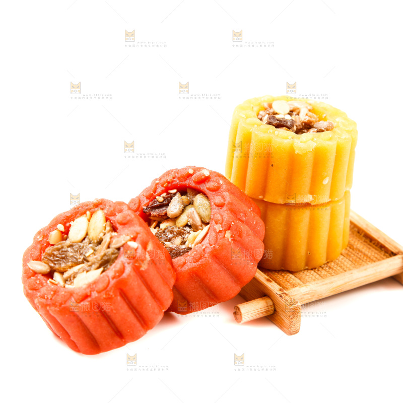 白底上放着坚果月饼