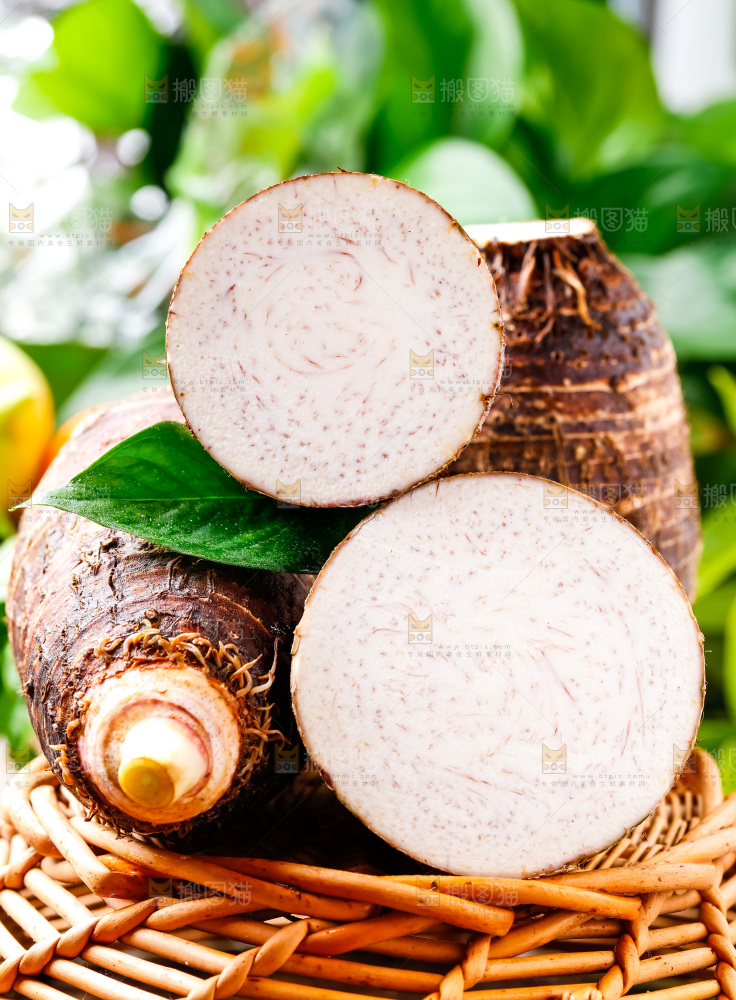 竹篮上放着广西荔浦芋头