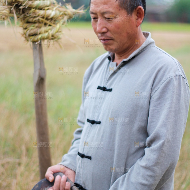 农民手里拿着镰刀