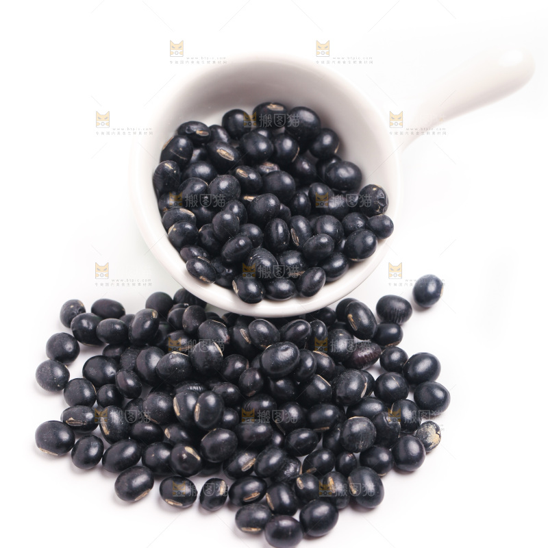白底上摆放着黑豆