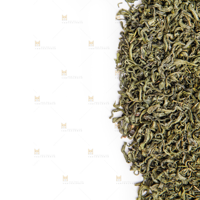 白底上摆放着绿茶