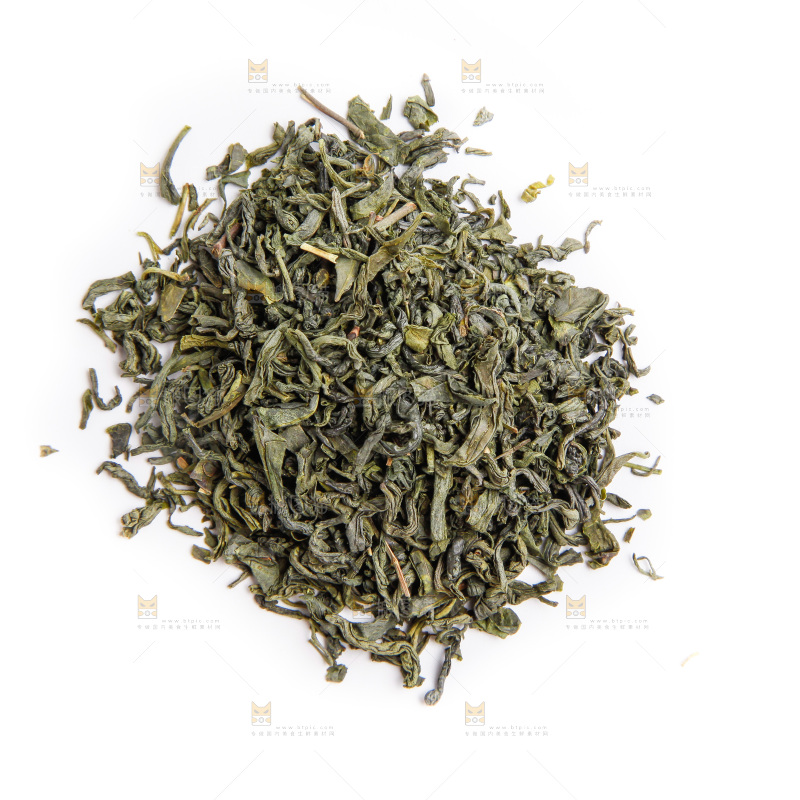 白底上摆放着绿茶