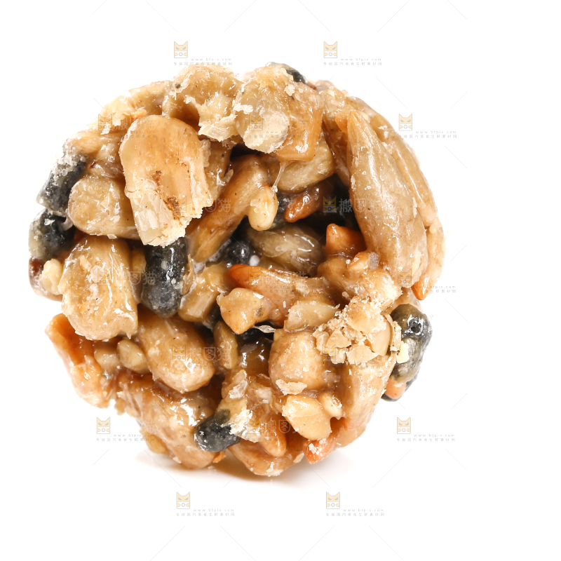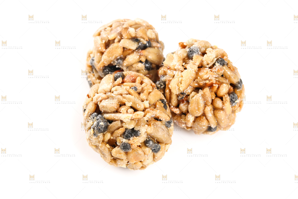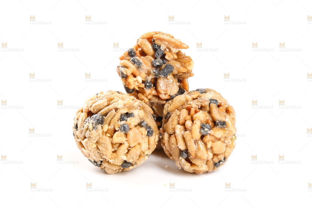 坚果丸子摆放在白底上
