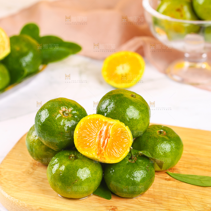 木板上摆放着清香茶橘