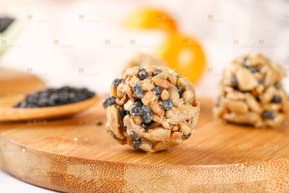 木底上摆放着坚果丸子