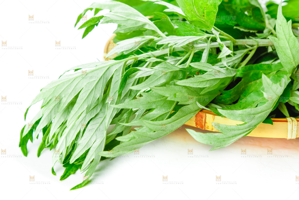 白底上放着艾草叶