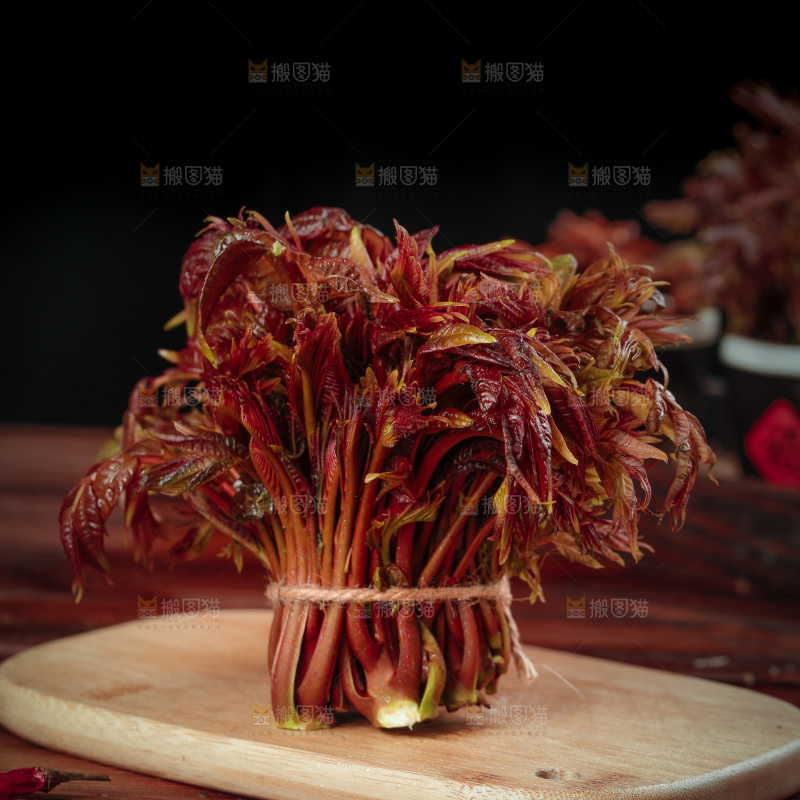 木板上放着红油香椿