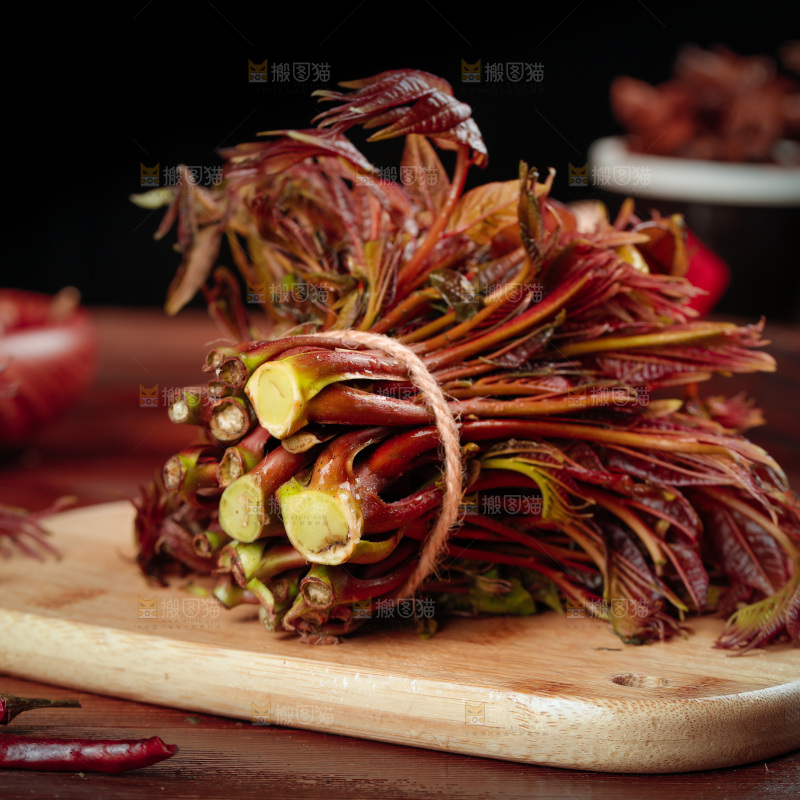 木板上放着红油香椿