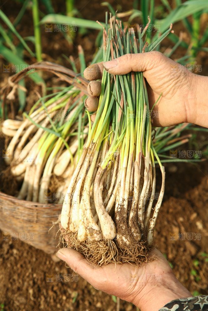 手里拿着藠头