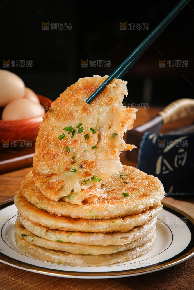 筷子夹着葱花饼