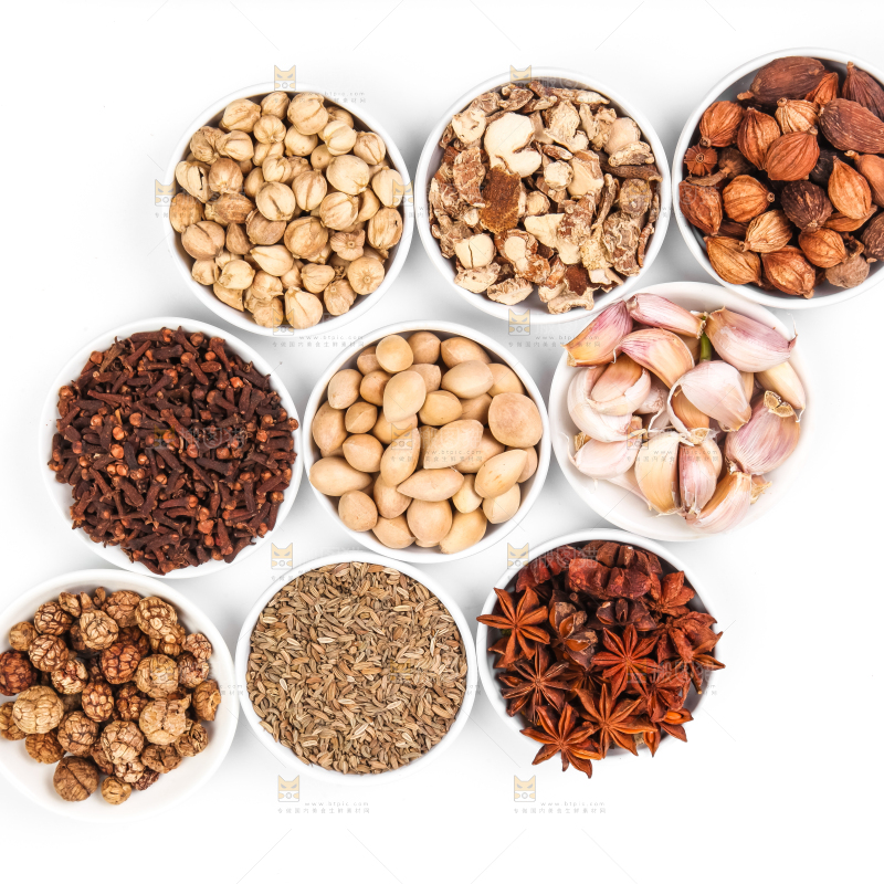 白底上放着香料组合