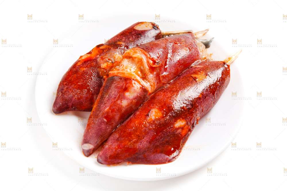 盘子里装着香辣鱿鱼