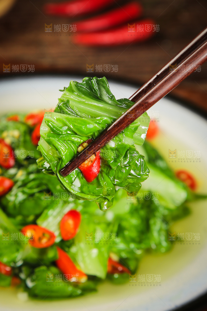 筷子上夹着辣炒小白菜