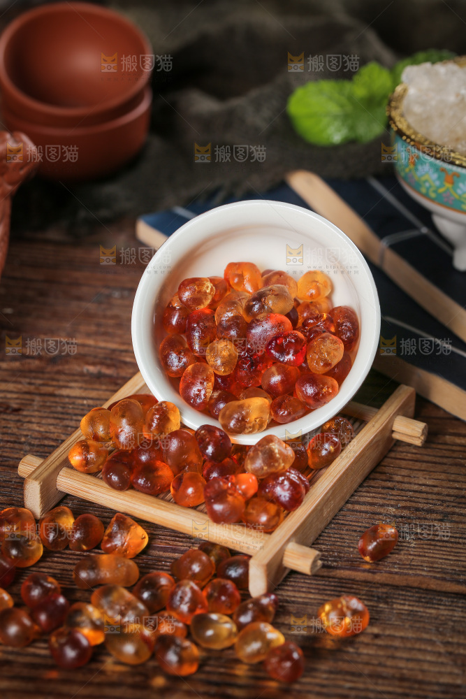木垫上放着桃胶