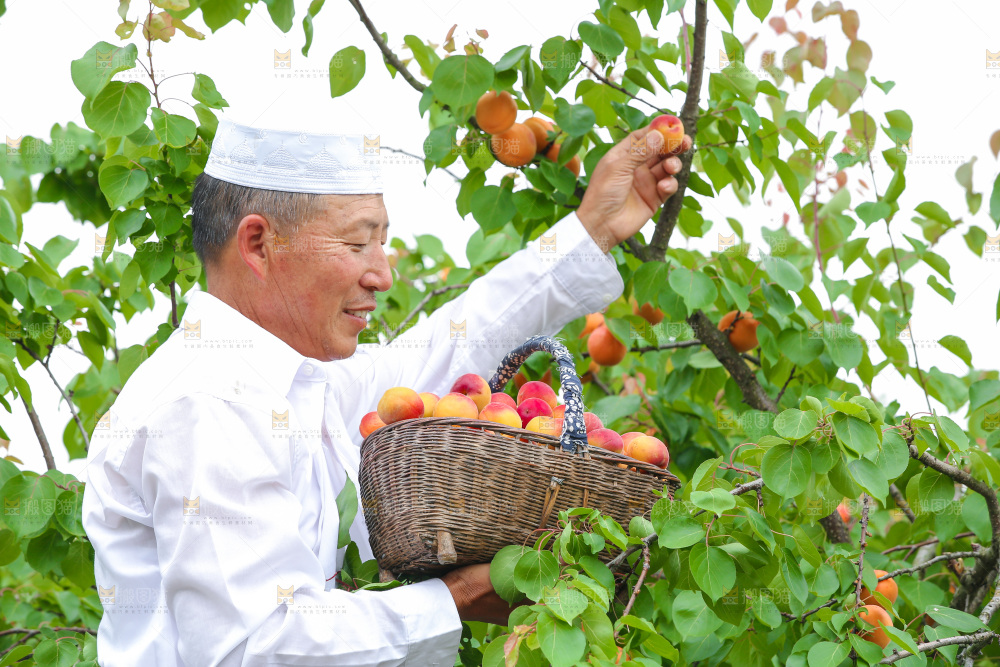 果园里老人新鲜采摘小红杏