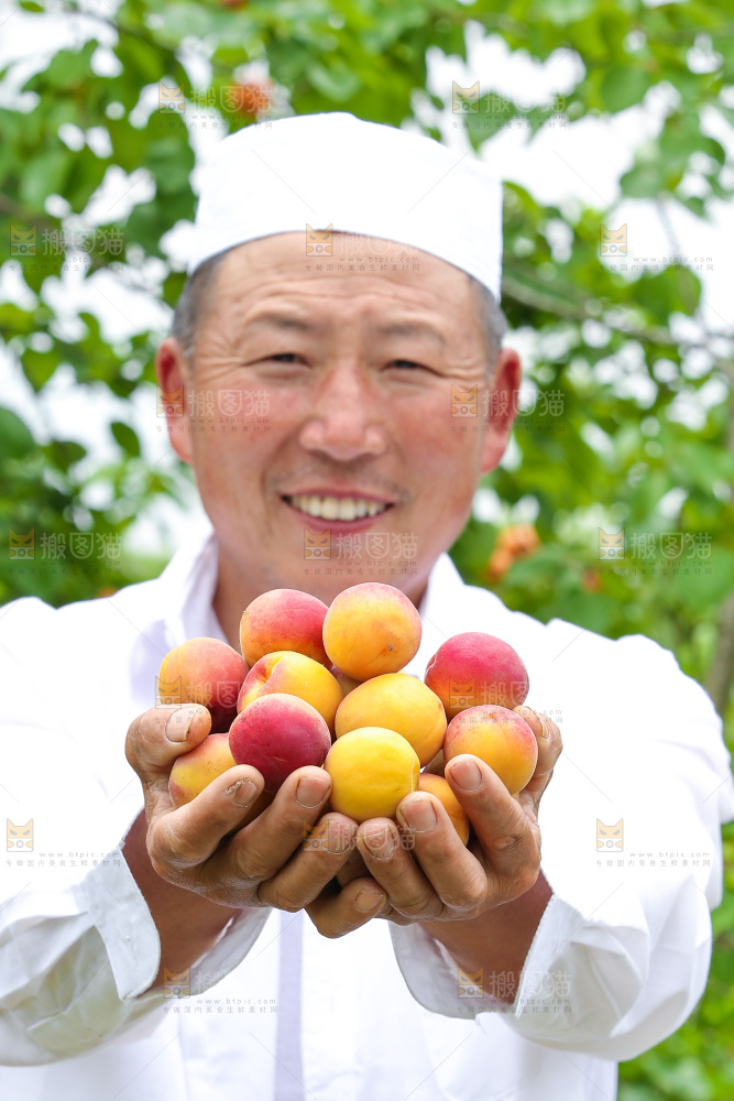 果园里老人手里捧着小红杏