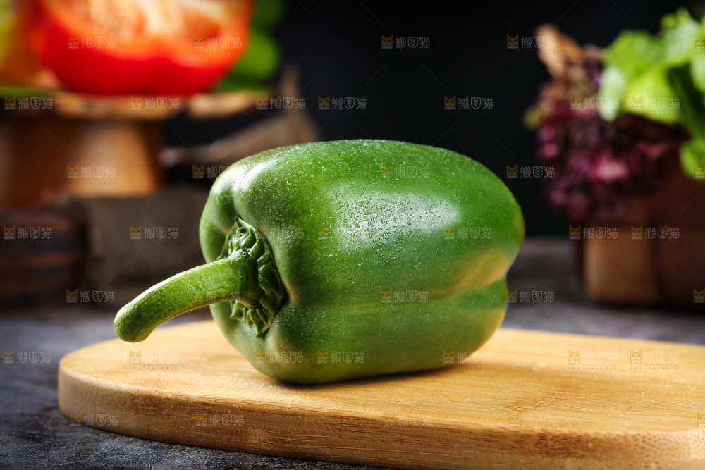 木板上放着五彩椒