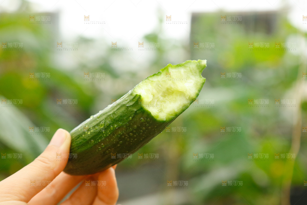 手里拿着掰开的黄瓜