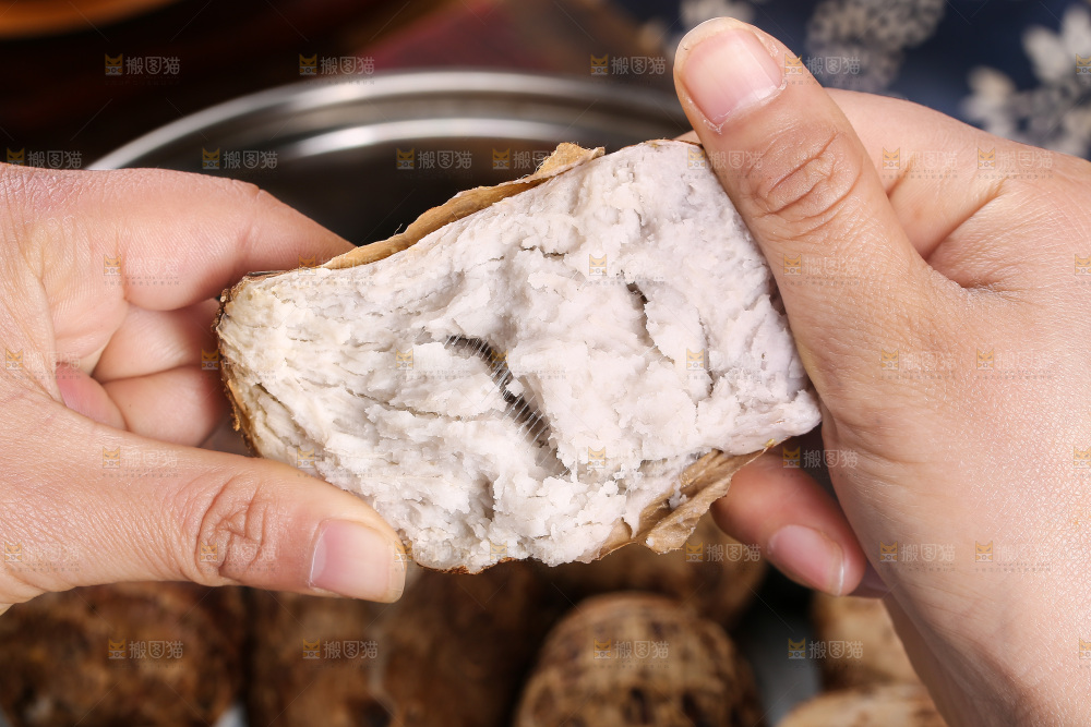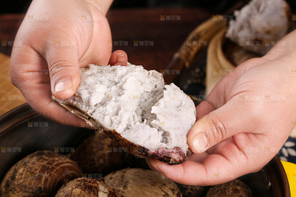 手里拿着红芽小芋头