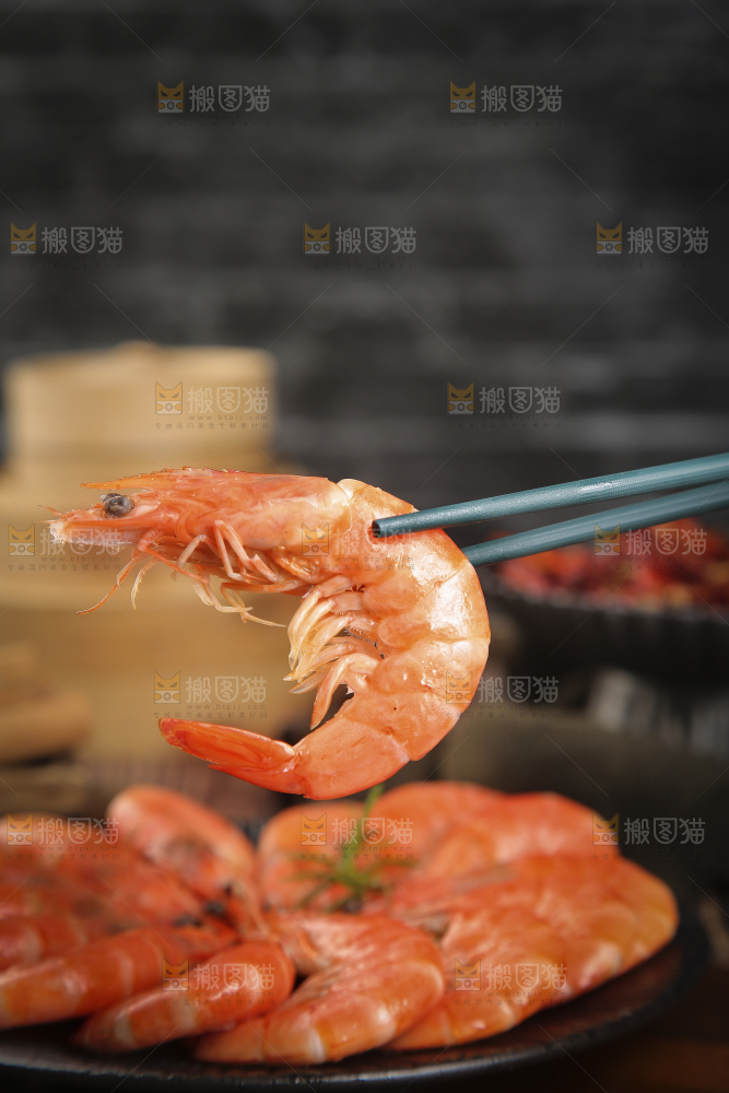 筷子上夹着水煮虾