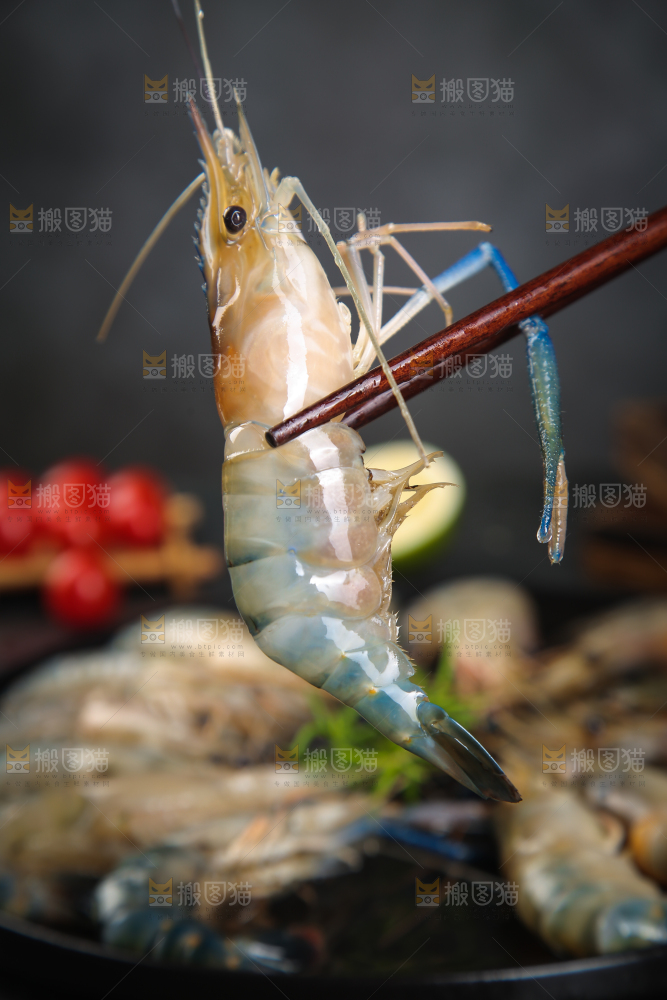 筷子上夹着罗氏虾