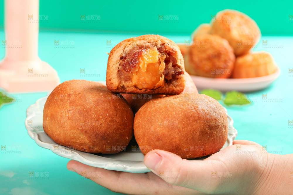 手端着一盘火腿蛋黄月饼
