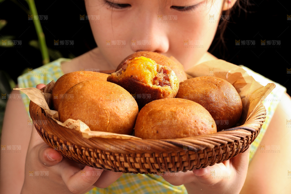 女孩端着一篮火腿蛋黄月饼