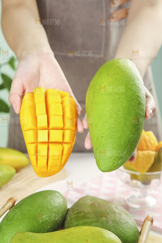 手上拿着金煌芒果肉