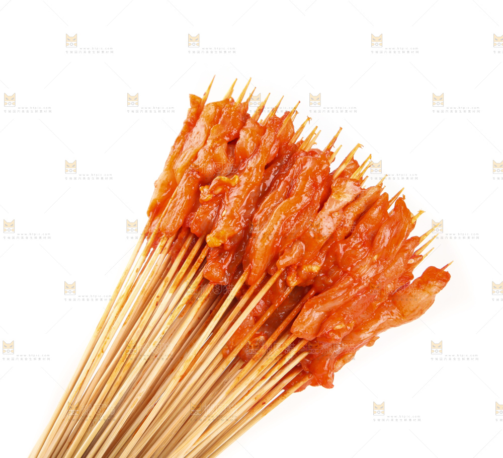 白底上放着肉串