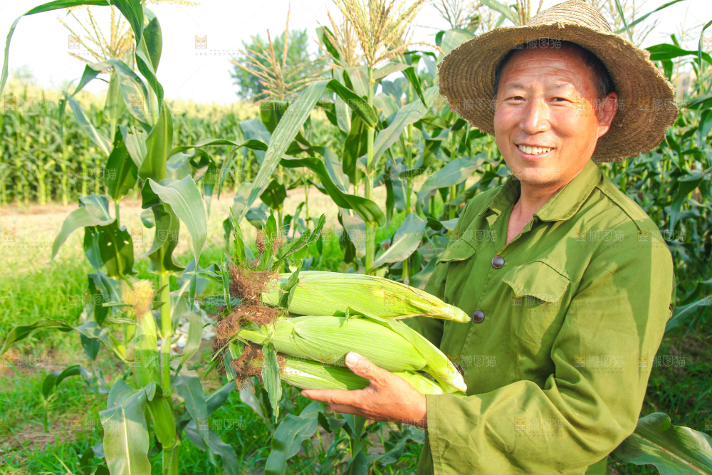 农民手上抱着糯玉米