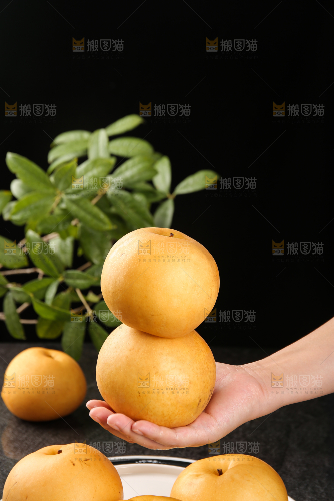 手里放着新鲜秋月梨