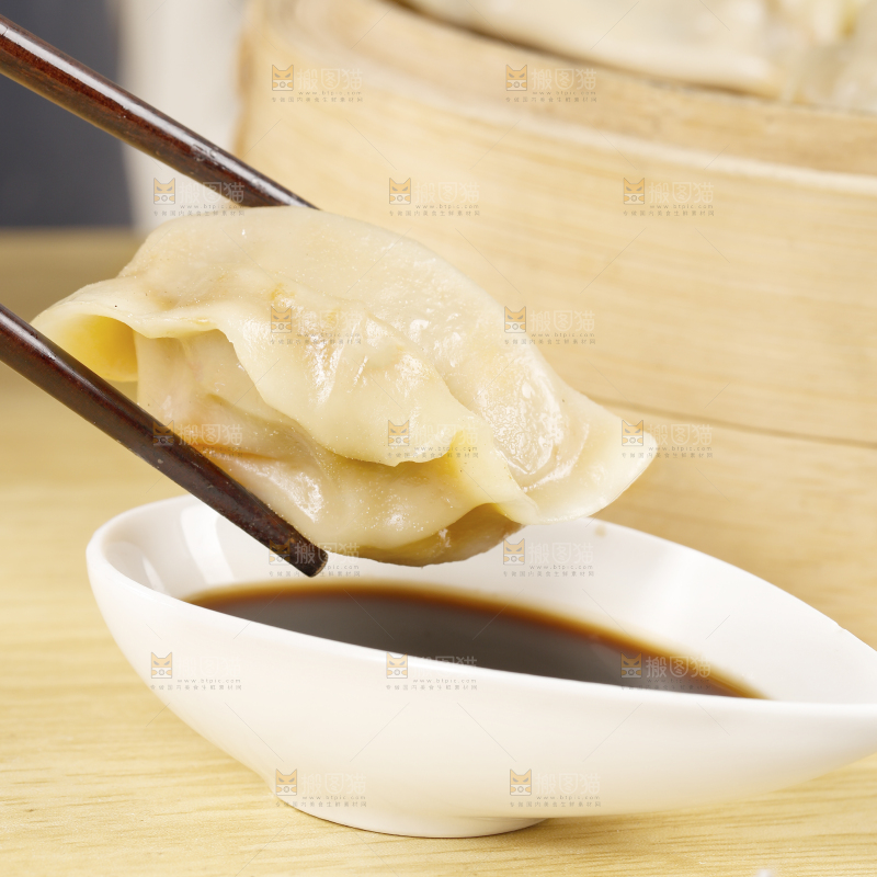 蘸着酱汁的手工饺子