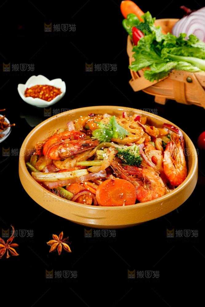 黑底上一盘麻辣干锅