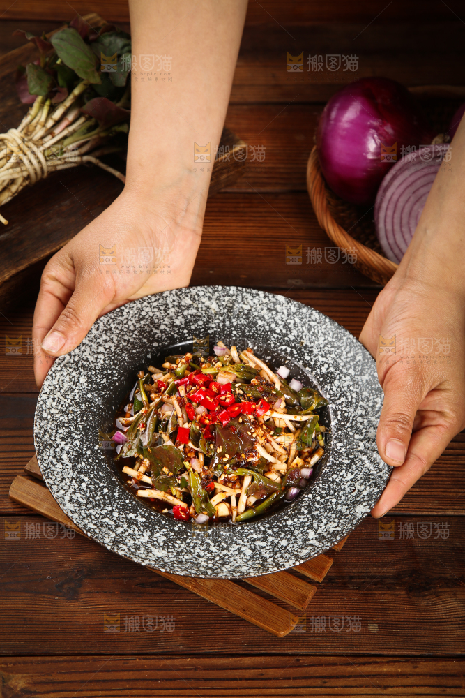 手里端着一盘折耳根