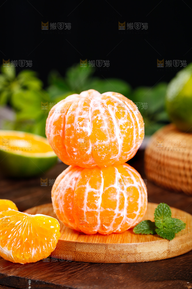木垫上的蜜橘果肉