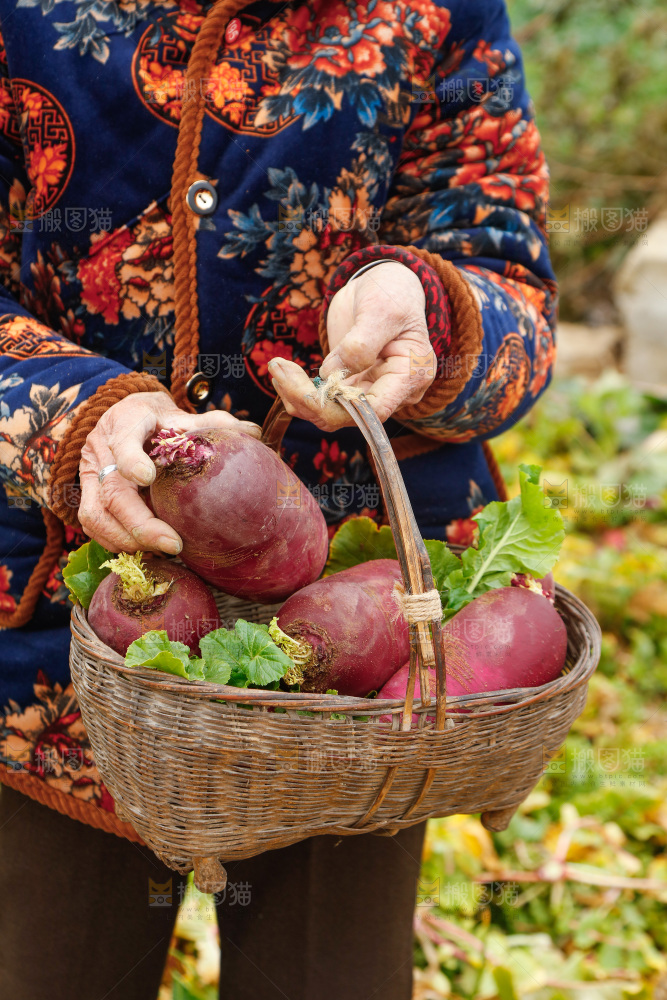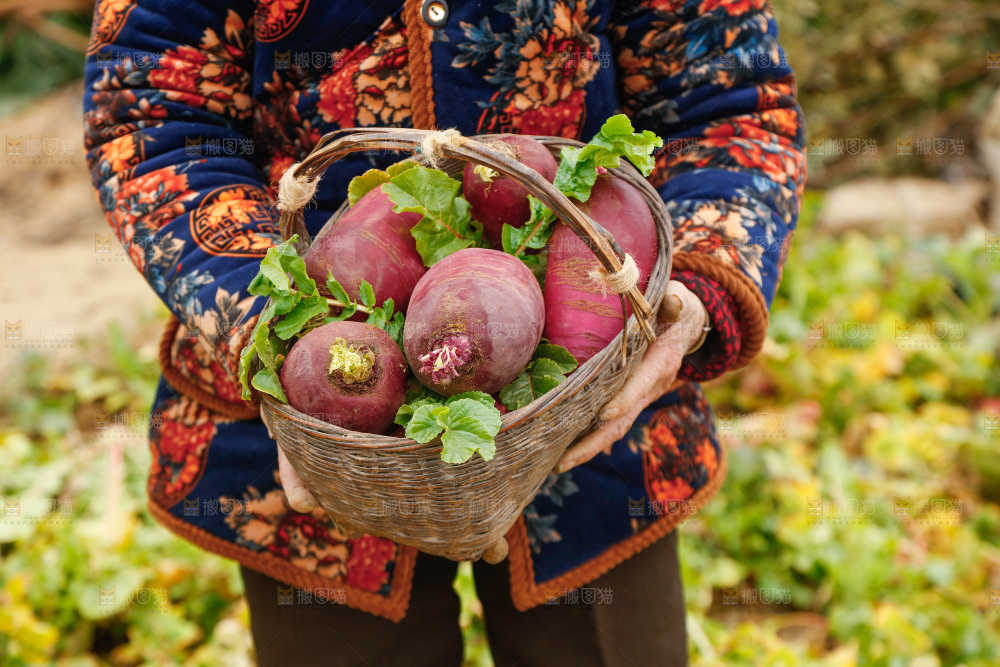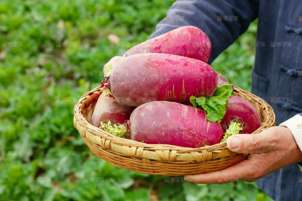 手里拿着紫美人萝卜