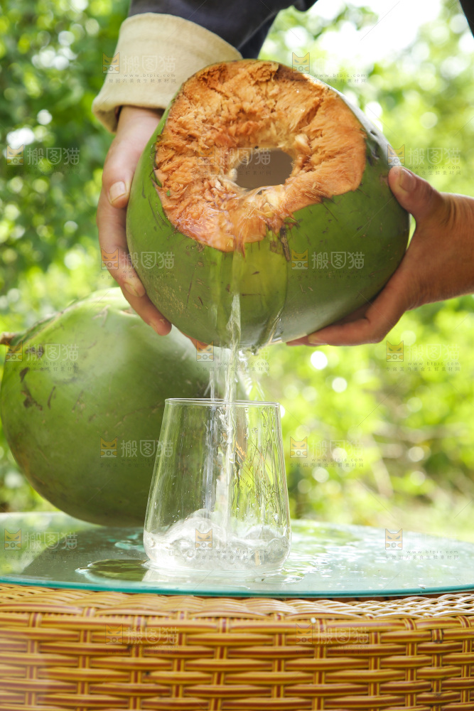 椰子汁倒入杯子中