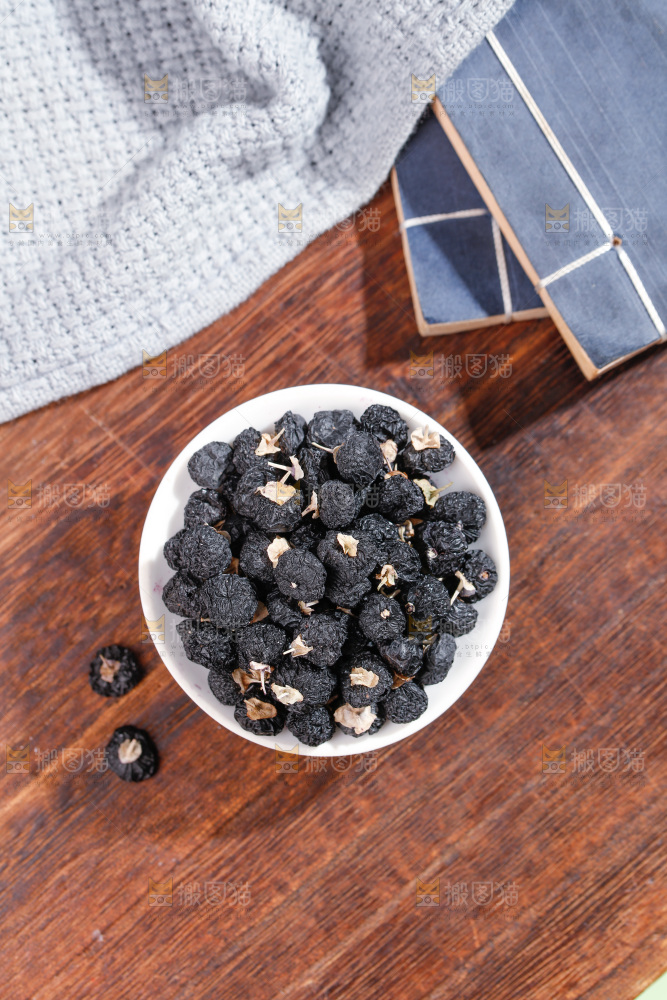 木底上放着黑枸杞