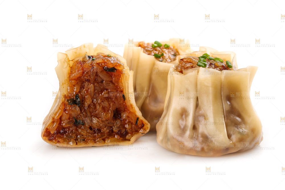 白底上的糯米烧麦